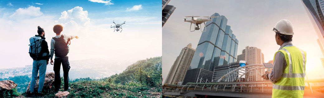 ※画像の機体は一例です。UASレベル2技能認証試験に合格すると200g~5000gまでのドローンを屋外で合法的に飛行させられるようになります。