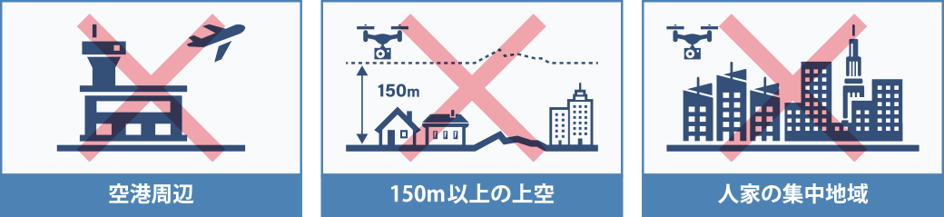 ・空港周辺 ・高度150メートル以上 ・人家の集中地域