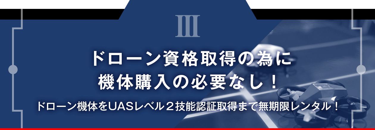 ドローンの仕組みを理解する、ドローンを飛行させる感覚を掴むために機体を購入する必要はありません。練習機体・付属バッテリーを無料でレンタルします。機体が損傷した場合やバッテリーが劣化した場合も無料で交換できます。